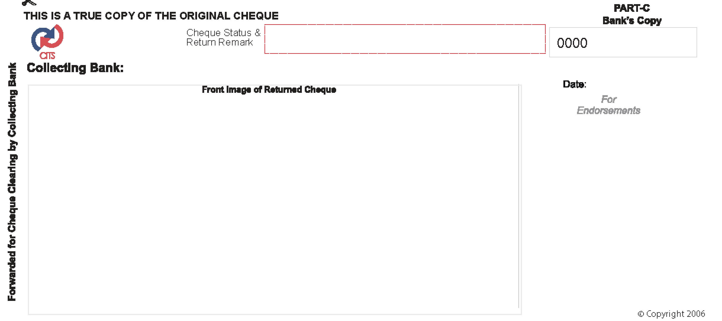 රැස් කරන බැංකුව, චෙක්පත් ස්කෑන් කර, චුම්බක තීන්ත අක්ෂර හඳුනාගැනීමේ (MICR) තොරතුරු සමඟ එම පිළිබිඹු චෙක්පත් නිෂ්කාශන මධ්යස්ථානය වෙත යොමු කරයි.