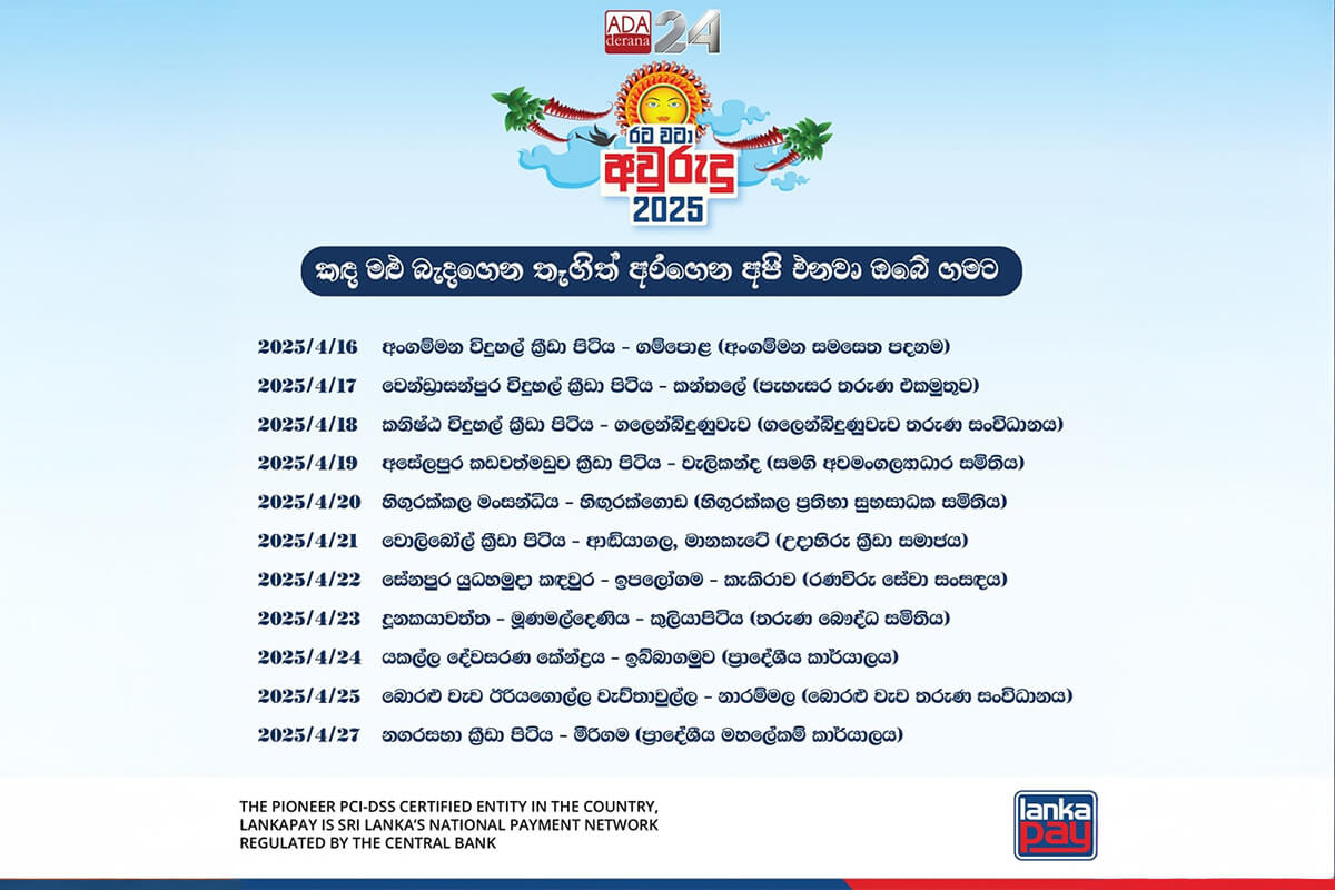 LankaPay was proud to be part of the Rata Wata Avurudu 2025 campaign organized by Ada Derana 24, held across the island from April 16 to April 27, 2025, in celebration of the Sinhala and Tamil New Year. This nationwide initiative brought festive cheer to towns including Ampara, Kaththankudy, Nuwara Eliya, Badulla, Matara, Nikaweratiya, Anuradhapura, Matale, Kandy, and Mirigama. At each stop, LankaPay actively engaged with the public, raising awareness on the importance and benefits of digital payment solutions introduced to simplify everyday financial transactions.