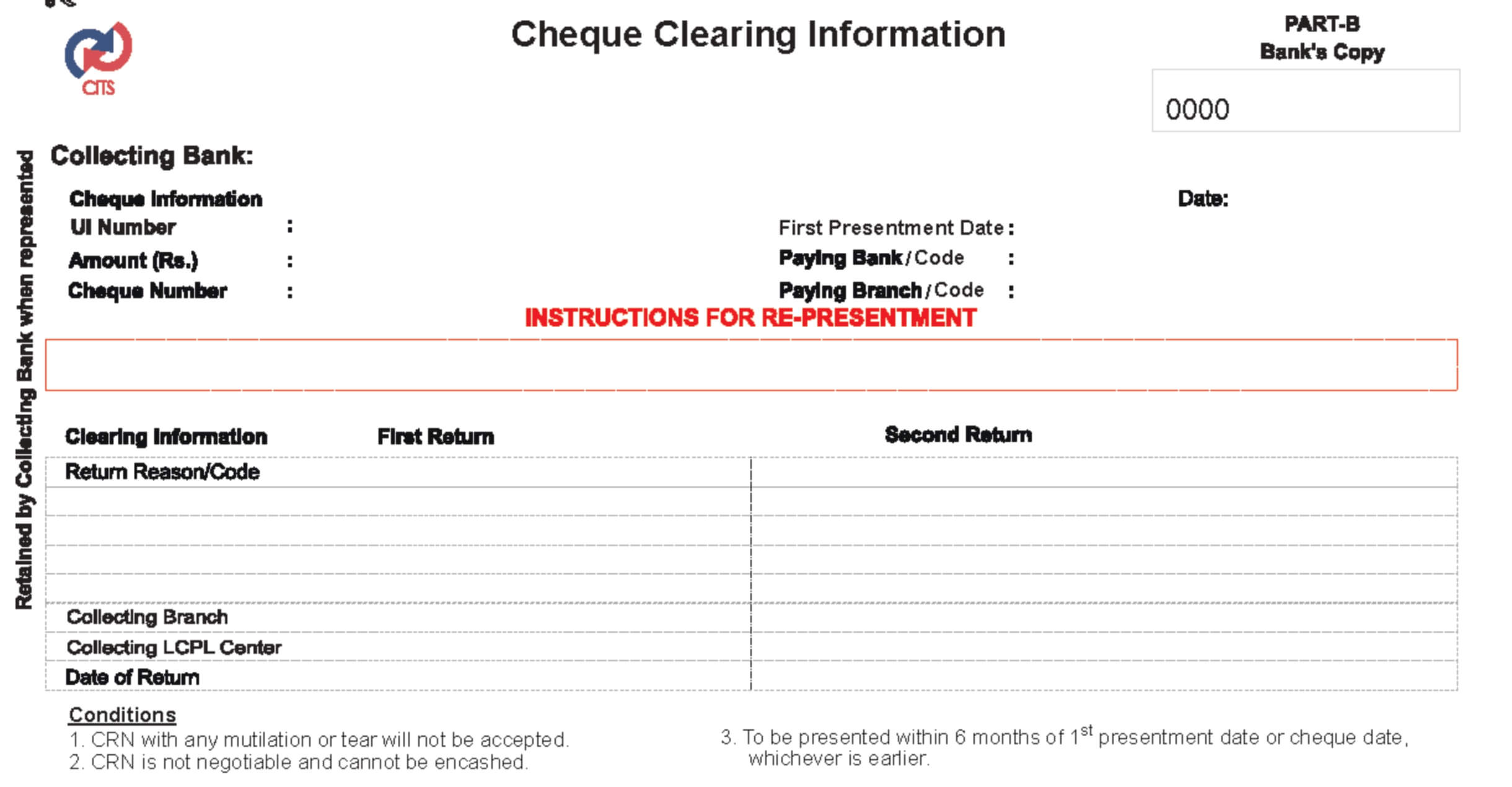 අගරු චෙක්පත් නිවේදනයේ B කොටසෙහි චෙක්පතේ නිෂ්කාශන තොරතුරු අඩංගු වන අතර, එය බැංකුවේ පිටපත ලෙස භාවිත කරයි. නැවත ඉදිරිපත් කිරීම සඳහා අවශ්ය උපදෙස් සහ නැවත ඉදිරිපත් කිරීමේ කොන්දේසි පැහැදිලිව මෙහි සඳහන් කර තිබේ.